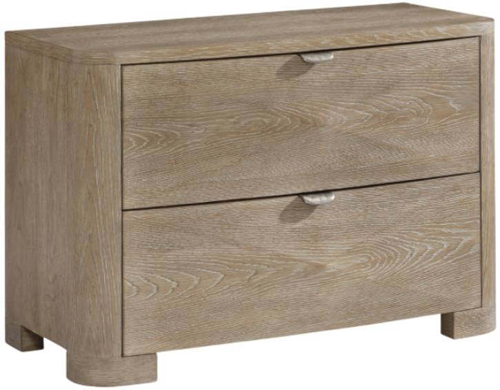 The Aventura nightstand highlights the dimensional designs that are a signature of this collection. Two soft-close drawers are defined by cast resin molding that surround bold metal hardware. A two-port USB charging unit is included on the back. Finished in Marcona, the nightstand crafts a relaxed California style.Read More