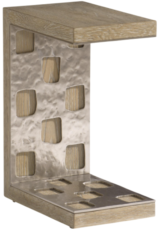 Cool California style finds its form in cast aluminum metal overlays on the Aventura accent table. Openwork freeform squares on the back and base of the C-shaped table reveal the wood frame in our Marcona finish.Read More