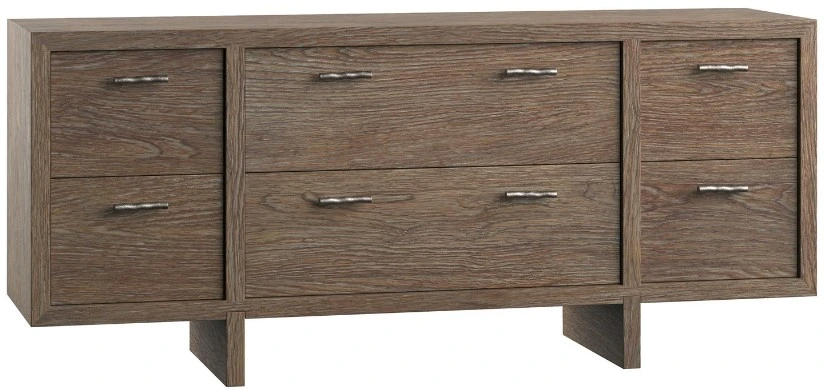 Taking a minimalist approach, the Casa Paros dresser appears to float above two leg panels. Six soft-close drawers in two sizes have cast metal hardware in an organic shape. The rustic Playa finish offers natural textures and subtle wood grains.Read More