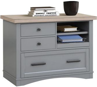Finished in a Dove Gray with a contrasting wood-grain top, this home office essential is as fashionable as it is functional.