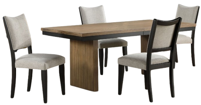 Complete Set: Includes the Roatan 80-96″ Table with a 16″ leaf and 4 Roatan Upholstered Side Chairs. Each item is also available separately