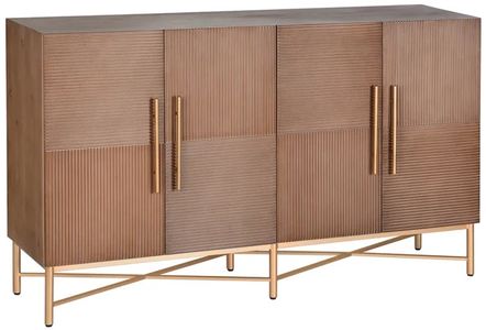 This stylish sideboard blends modern industrial charm with refined storage, featuring a sturdy wooden and metal construction accented by corrugated front doors. The natural dark finish is complemented by elegant gold hardware, creating a bold yet sophisticated statement for dining rooms or living spaces.Read More