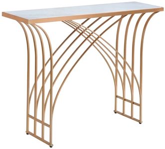 This elegant console table makes a striking statement with its graceful arched silhouette and luxurious materials. Featuring a genuine white marble top paired with a refined gold-finished base, it blends modern glamour with timeless sophistication, perfect for entryways, hallways, or living spaces.Read More