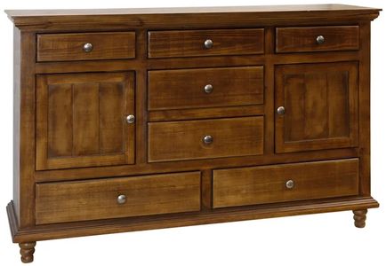 The rivers edge dresser in a warm pecan finish combines rustic charm with practical storage. Crafted from solid wood, it features a spacious layout with multiple drawers and doors, offering an ideal balance of functionality and timeless design for bedrooms or guest spaces.Read More
