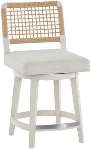 The shoreline swivel counter stool combines a Danish cord-woven backrest with a comfortable crypton nomad snow upholstered seat on a swivel base. This counter-height stool features a crisp shoreline white finish and brushed stainless steel footplate, creating a perfect blend of coastal style and modern functionality.Read More